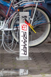 Ten model stacji możesz doposażyć w mobilną podstawę – ocynkowaną ogniowo. To rozwiązanie pozwala udostępniać stację w godzinach otwarcia np. restauracji, serwisu rowerowego, informacji turystycznej. Nie musisz też trwale montować stacji do podłoża, możesz umieścić ją w mobilnej podstawie i połączyć z istniejącym trwałym elementem za pomocą liny stalowej i kłódki.